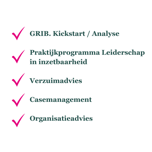 Dat vraagt om een aanpak die verder kijkt dan alleen de medische kant van verzuim. De GRIB. Adviseur© biedt daarin een gespecialiseerd scala aan professionele diensten om je te ondersteunen bij het krijgen van GRIP(B). op verzuim en duurzame inzetbaarheid.