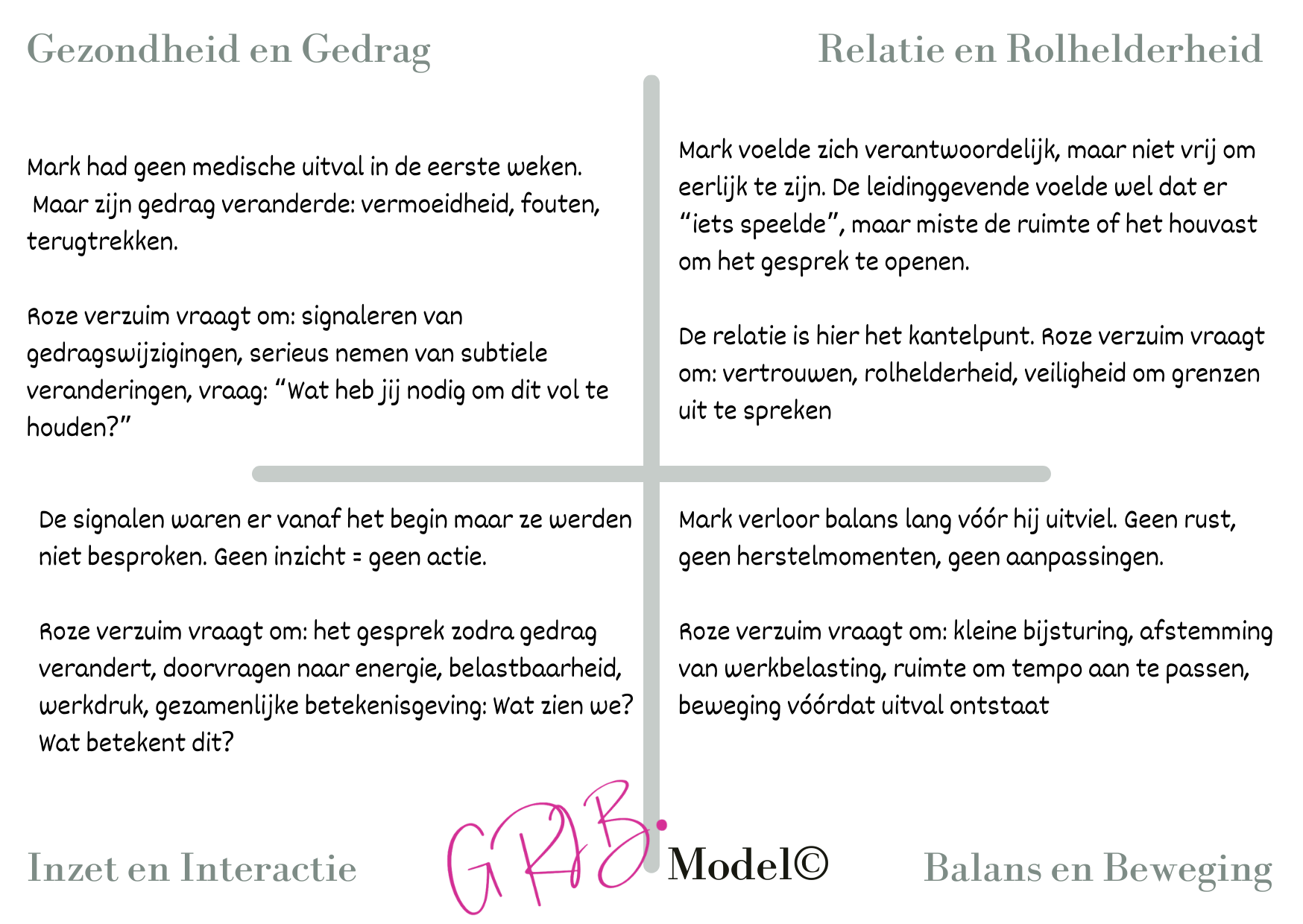 Roze verzuim speelt zich precies af op de vier pijlers van het GRIB.-model©.